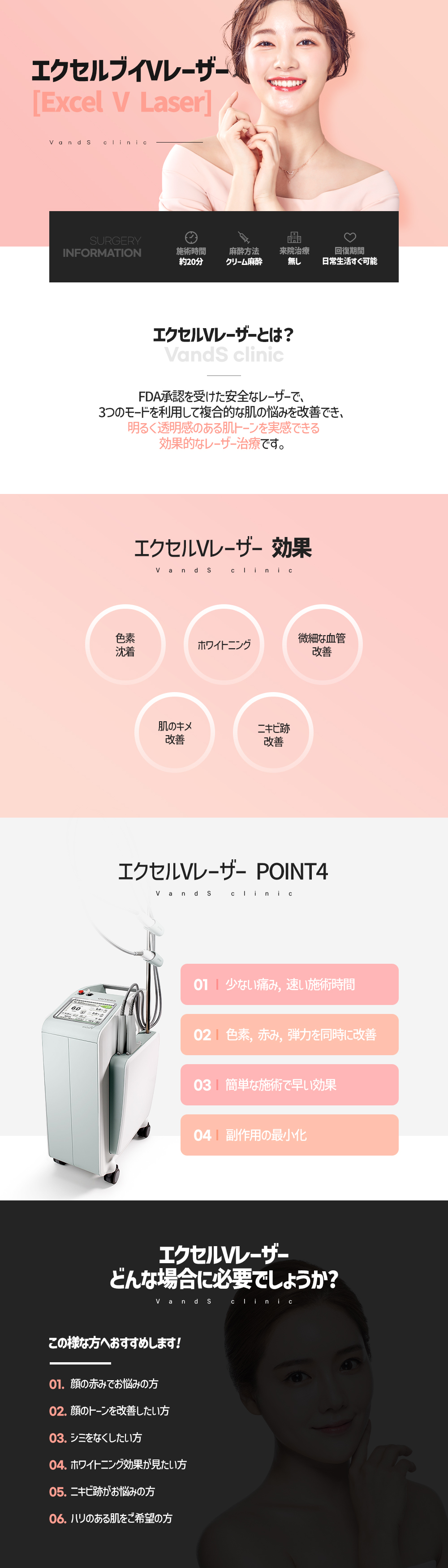 比較的に強力なエネルギーと短いパルス幅により、ダウンタイムや痛みを軽減し、赤み・色素沈着・肌質・トーンの改善が期待できます。