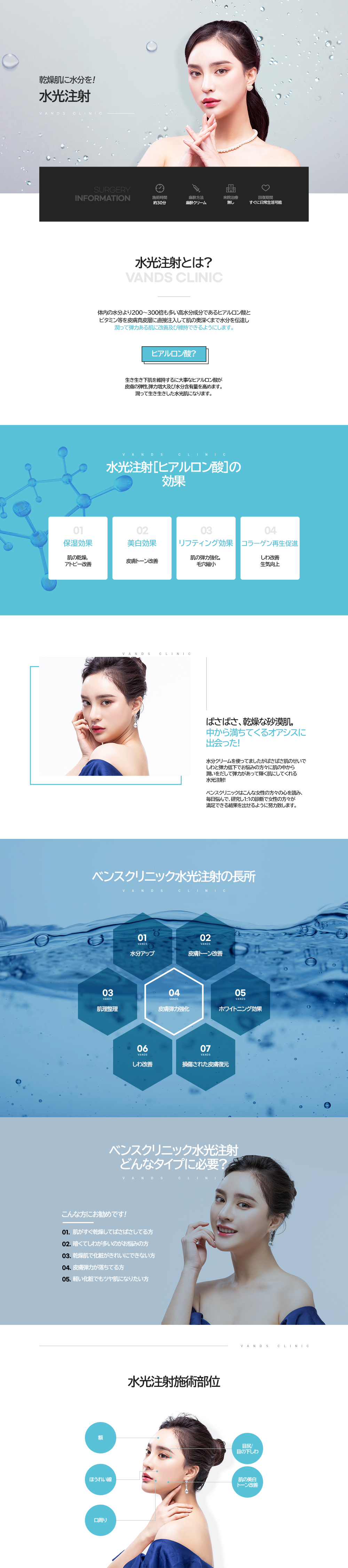乾燥してパサついた肌に対し、注射でヒアルロン酸を真皮層に直接注入します。 これにより、乾燥した肌にしっかりと潤いを与え、みずみずしくハリのある肌へと導きます。