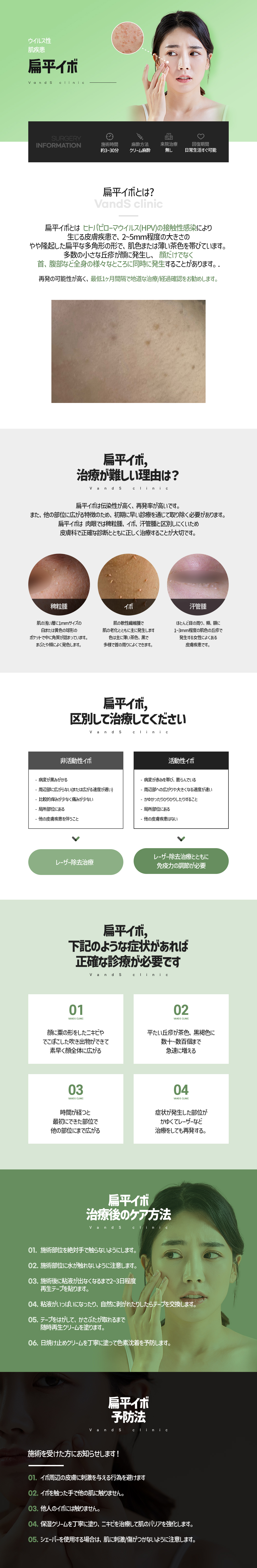ヒトパピローマウイルス(HPV)の接触感染によって発生する皮膚疾患で、再発しやすいため、最低でも1か月間隔で継続的な治療が必要です。